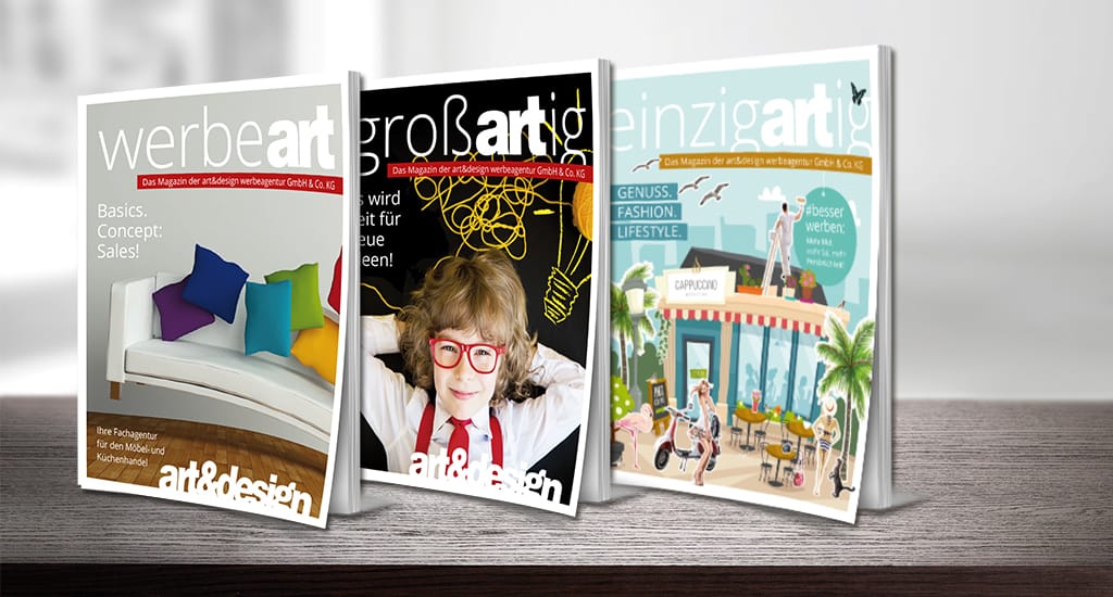 Die art&design Werbeagentur ist seit fast 35 Jahren erfolgreich in Sachen Handelsmarketing für größere Einzelhandelsunternehmen und Einkaufsverbände bundesweit. Dabei liegt der Schwerpunkt in der strategischen Planung und der kontinuierlichen Weiterentwicklung der Marketing-Aktivitäten unserer Kunden in den Bereichen Print & Online.